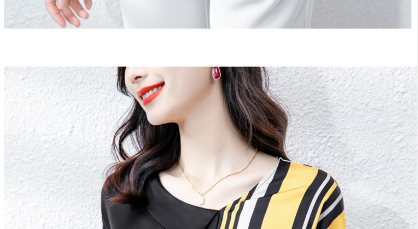เป็นงานดีไซน์แบบสีตัดกัน มีความสวยหรูดูดีมากจริงๆ ใส่ไปทำงานหรือไปออกงานก็โอเคเลย ชอบมากเลย รู้สึกพอใจมากๆ