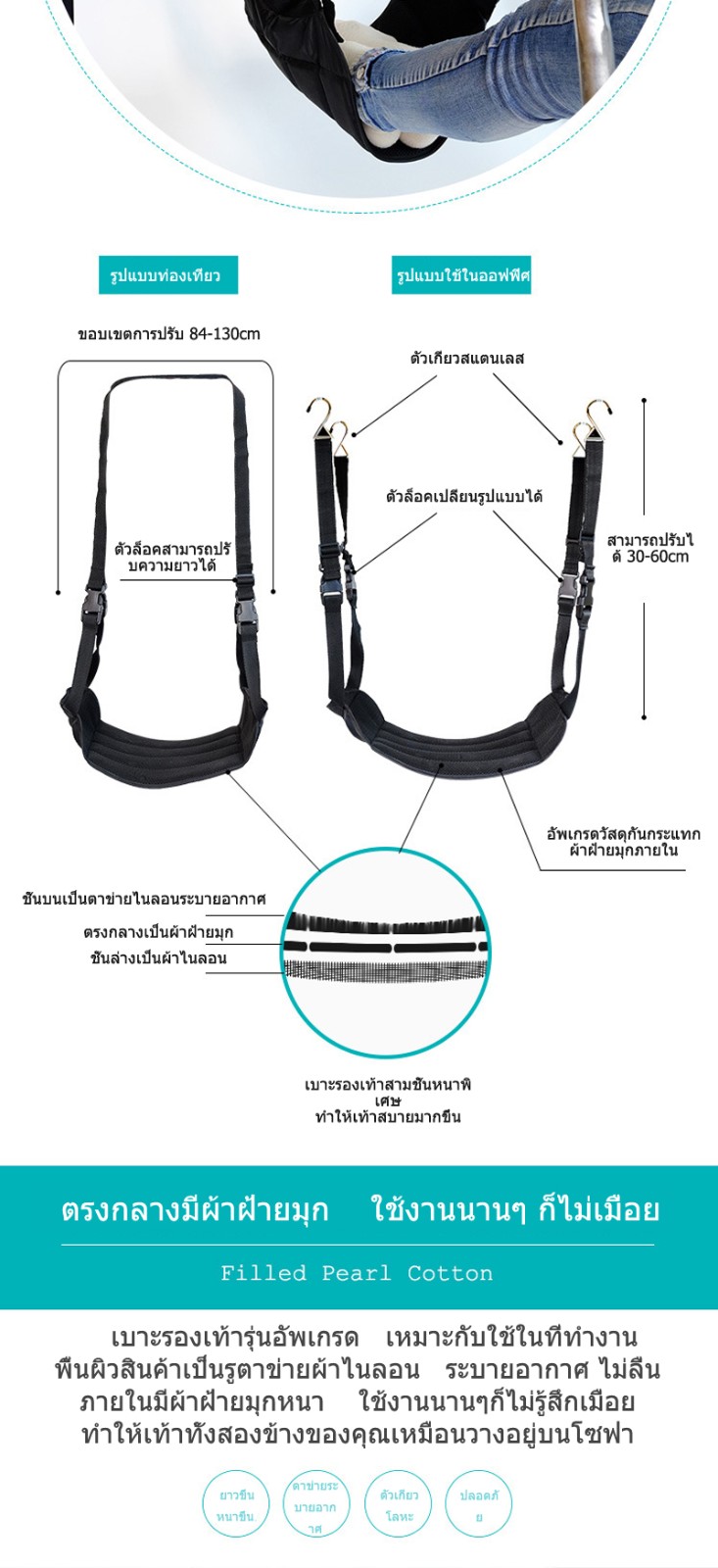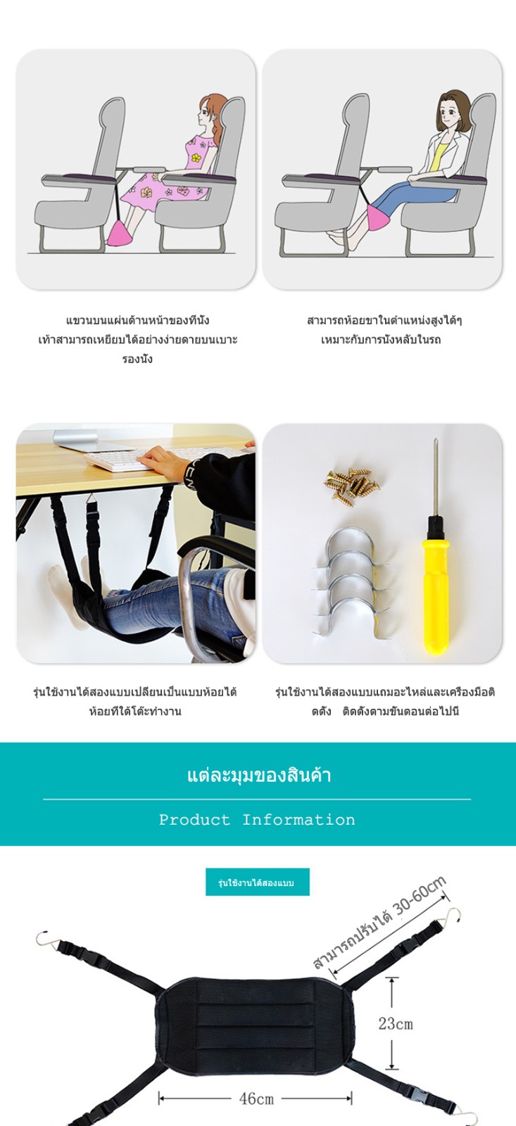 นั่งนานๆ เท้าชอบบวม เห็นเตียงห้อยขานี้ในเน็ต ไม่กินพื้นที่ ห้อยอยู่ข้างบน ติดตั้งง่าย เท้าไม่ต้องเหยียบกับกล่องหรือCPU ทำให้โต๊ะที่ออฟฟิศเป็นระเบียบขึ้นเยอะ ตอนใช้ก็ห้อยให้มันสูงๆ แบบนี้ก็ไม่ต้องกลัวเท้าบวมแล้ว