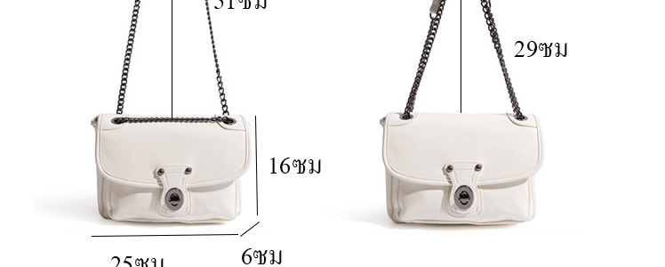 หนังนุ่มมาก ไม่มีกลิ่นเหม็น สายโซ่คุณภาพดีมาก ขนาดกำลังดี ใส่ของพกพาออกนอกบ้านสะดวกสบาย แบบดูเรียบหรูเหมาะสำหรับสะพายออกนอกบ้าน