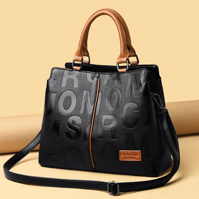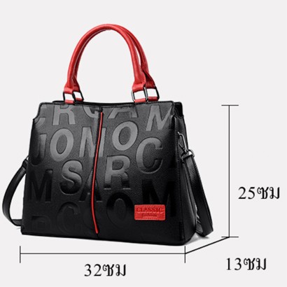 กระเป๋าสะพายความจุขนาดใหญ่พร้อมลายตัวอักษรนูน