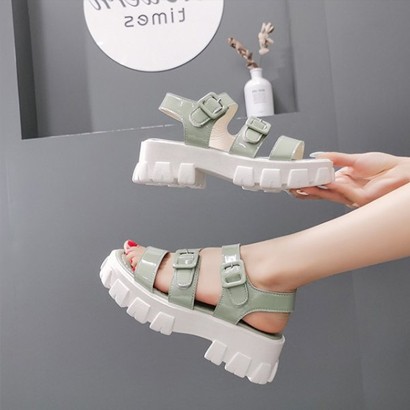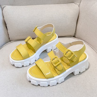 รองเท้ารัดส้นหนังเงาส้นหนา