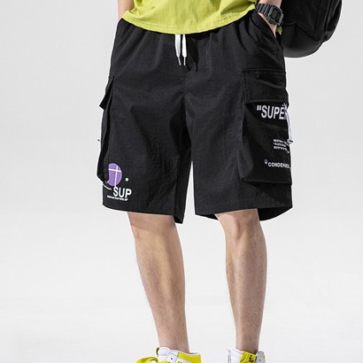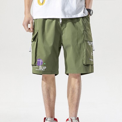กางเกงผู้ชาย5ส่วนมีสายรูดหลวมสบาย