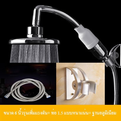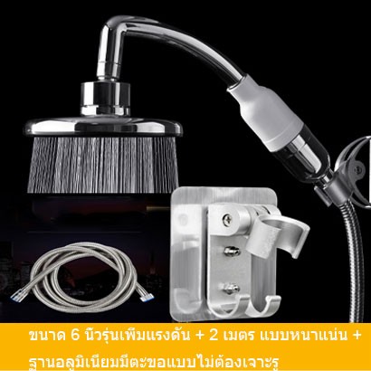 ขนาด 6 นิ้วรุ่นเพิ่มแรงดัน + 2 เมตร แบบหนาแน่น +ฐานอลูมิเนียมมีตะขอแบบไม่ต้องเจาะรู