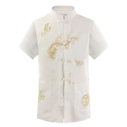 เสื้อปักลายมังกรแขนสั้นสไตล์จีน