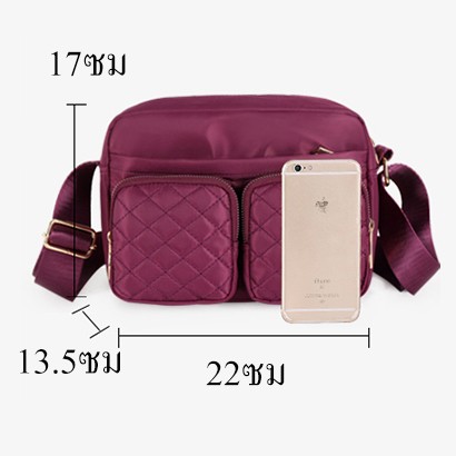 กระเป๋าผ้าไนล่อนช่องเยอะลายตรางใช้งานทน