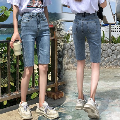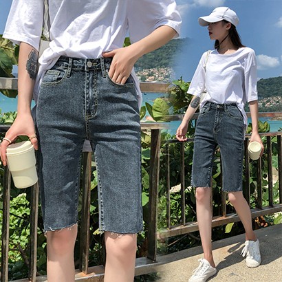 กางเกงยีนส์ห้าส่วนใส่แล้วดูผอมเพียว