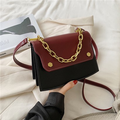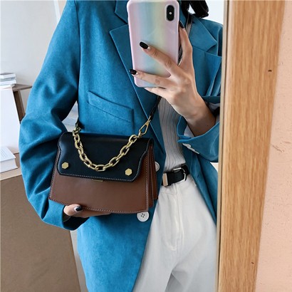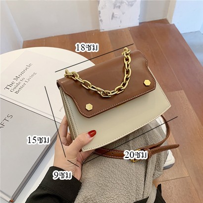 กระเป๋าสะพายแฟชั่นสองสีมีสายโซ่