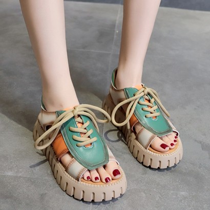 รองเท้ารัดส้นพื้นหนาสไตล์วินเทจ