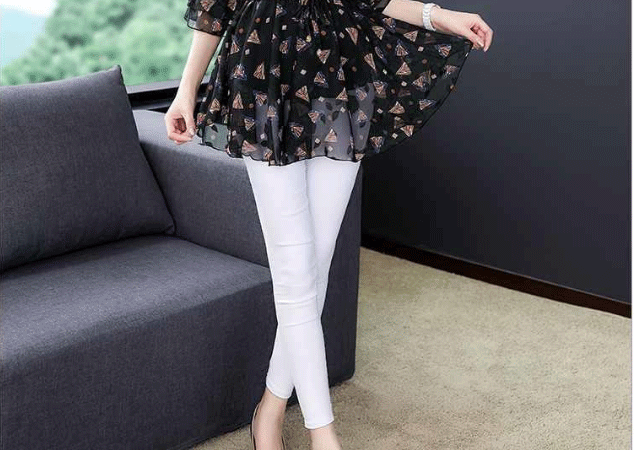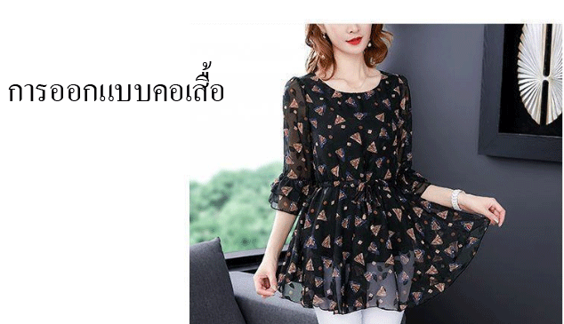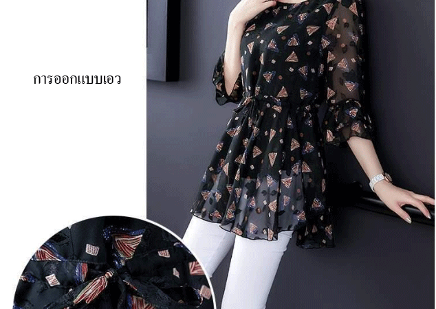 เสื้อชีฟองแขน5ส่วนใส่แล้วดูผอมเพียว