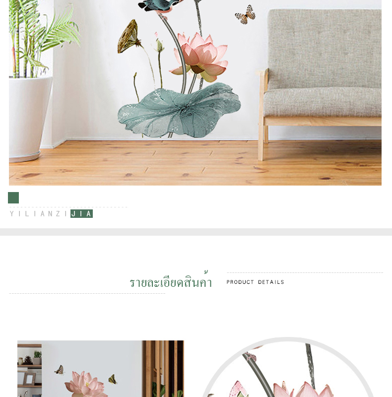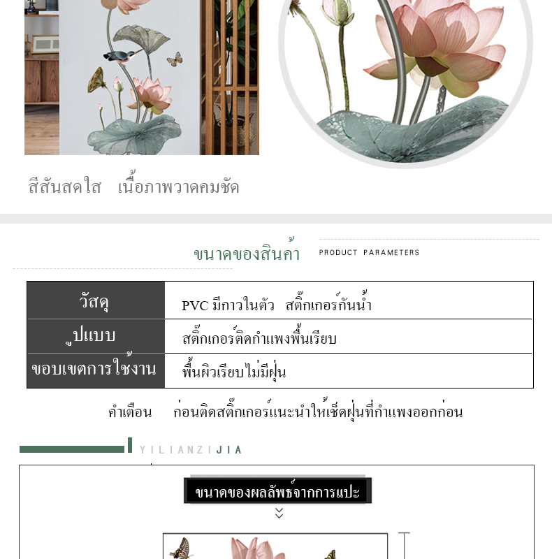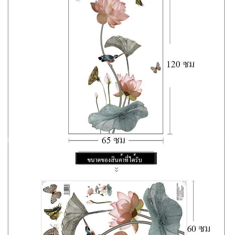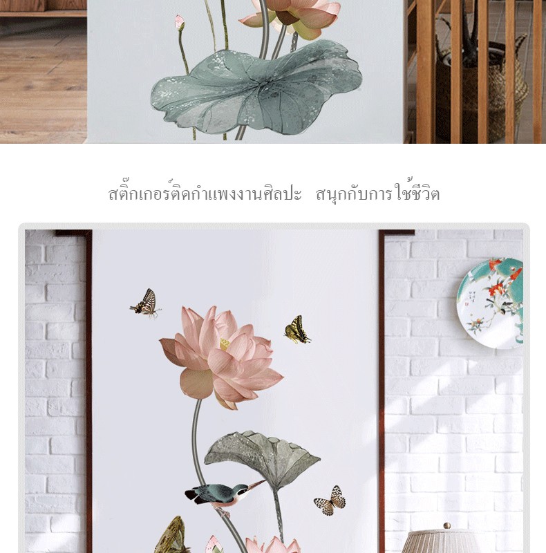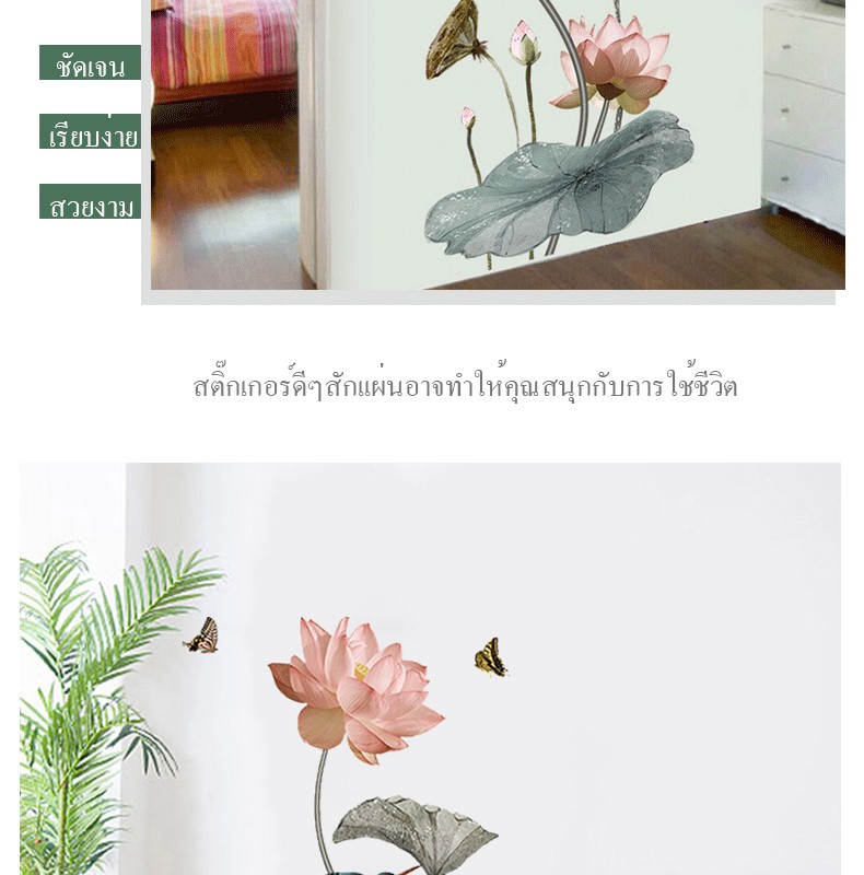 สติ๊กเกอร์ดอกบัวสวยมาก งานดี ไม่มีกลิ่น แปะแล้วมองดูมีชีวิตชีวา