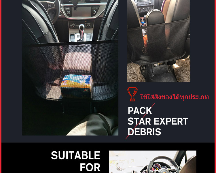 ตาข่ายเก็บของนี้ใช้งานดีจริงๆ ตอนซื้อคิดว่ามาใส่กระเป๋าอย่างเดียว แต่เวลาใช้งานจริง เสื้อผ้าที่เปลี่ยนใส่ก็ใส่ตรงนี้ได้ ใส่ได้เต็มที่เลย บางทีเอาไว้เก็บมือถือที่กำลังชาร์จไฟด้วย ไม่ต้องกลัวตกเลย