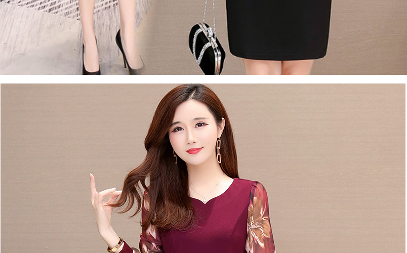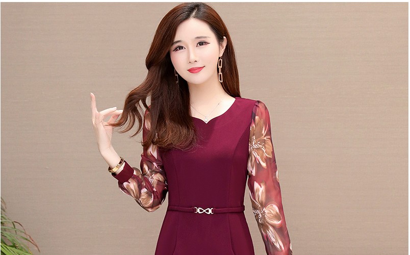 ชุดกระโปรงผ้าชีฟองรุ่นใหม่แขนยาวพิมพ์ลายแฟชั่น