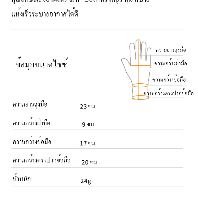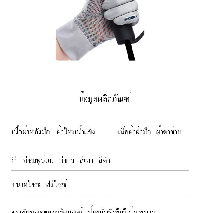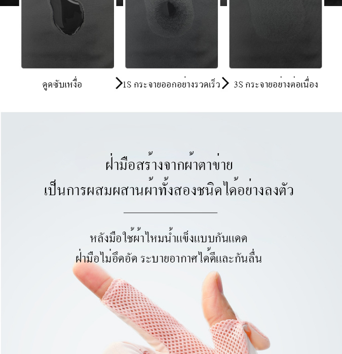 ถูกใจมาก เนื้อผ้าใส่สบายมาก เนื้อผ้าบางระบายอากาศได้ดี ตรงฝ่ามือเป็นเนื้อผ้าตาข่ายกันลื่นใส่สบาย