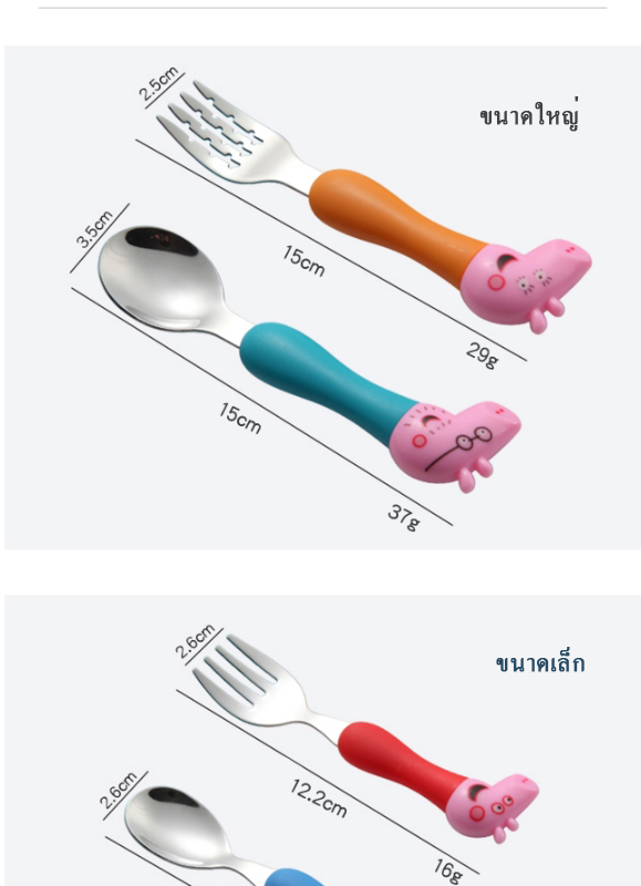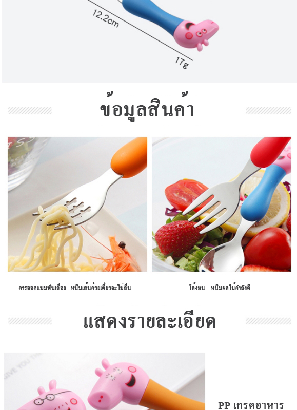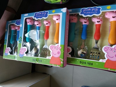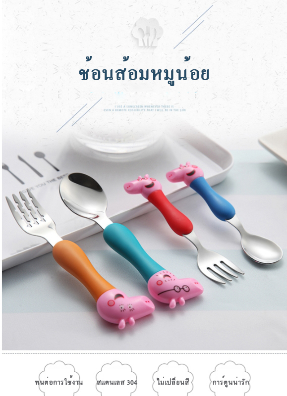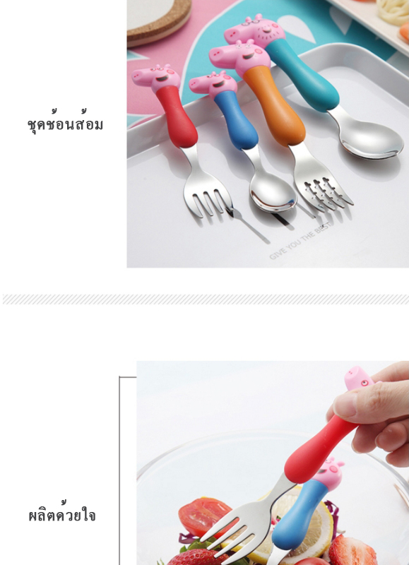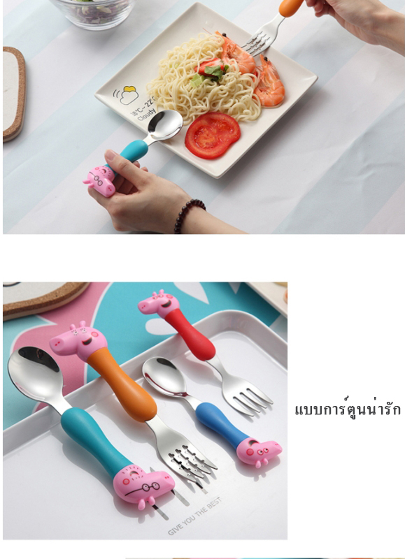 Peppa pig เเสนซนตัวนี้ ไม่รู้ว่ามีเเฟนคลับเด็กทั่วโลกเท่าไร ช้อนส้อมอันนี้ สเเตนเลส 304 คุณภาพดีมาก