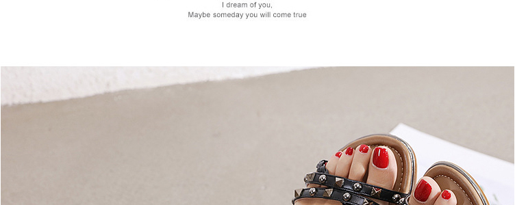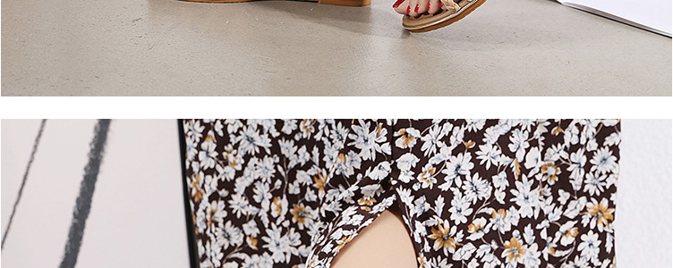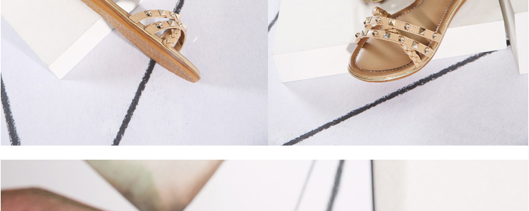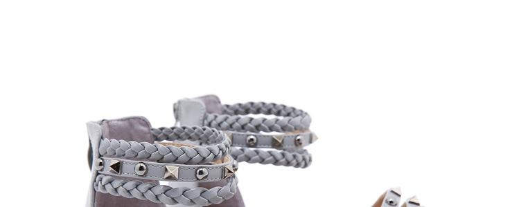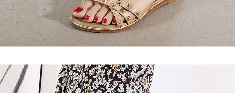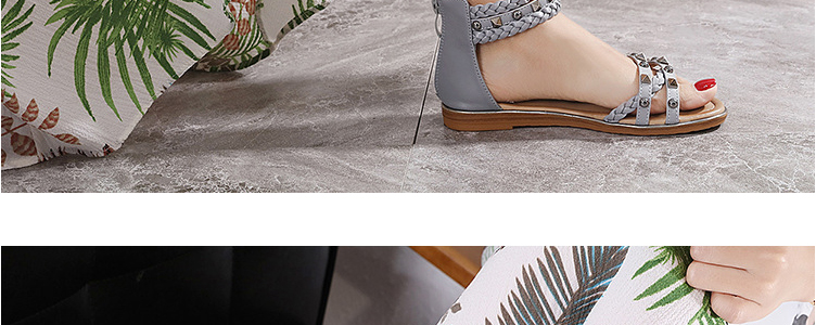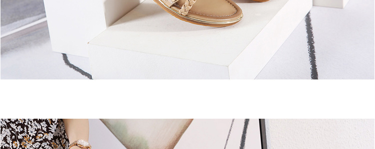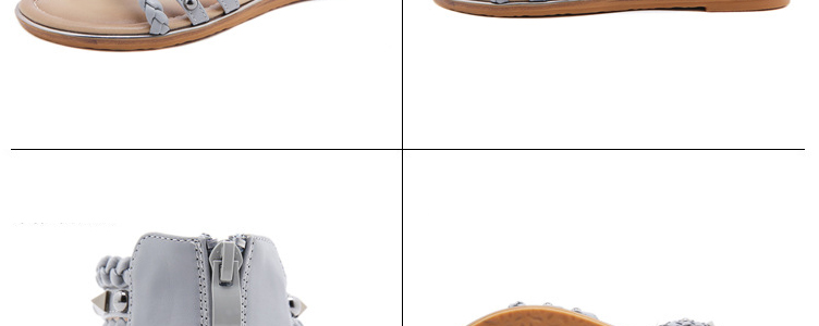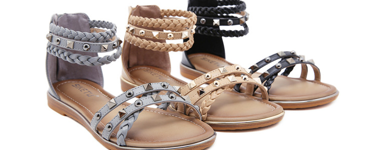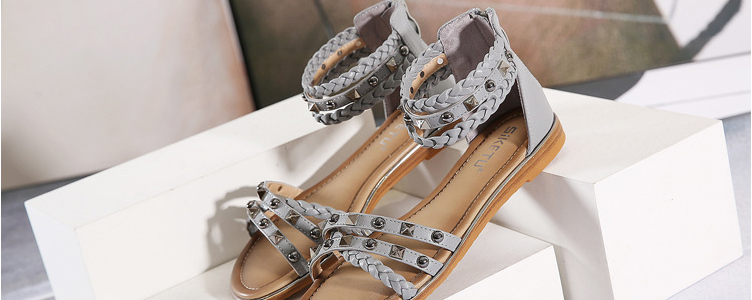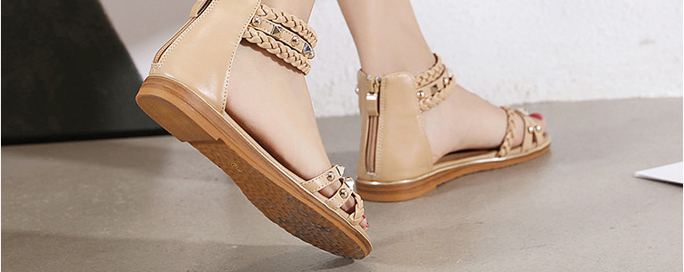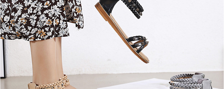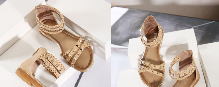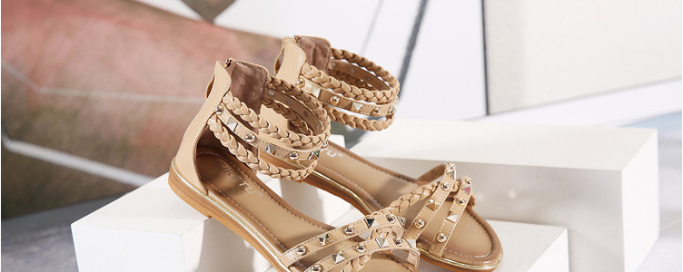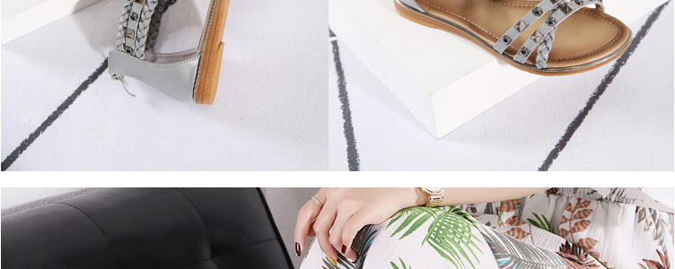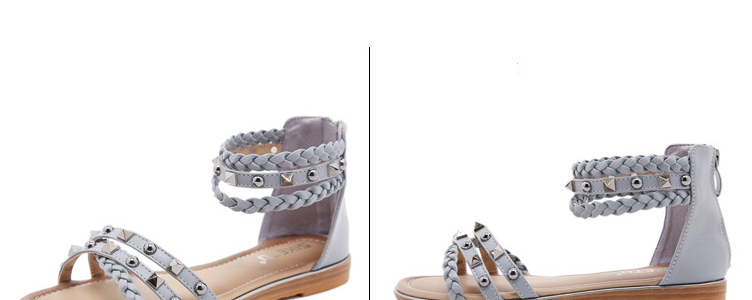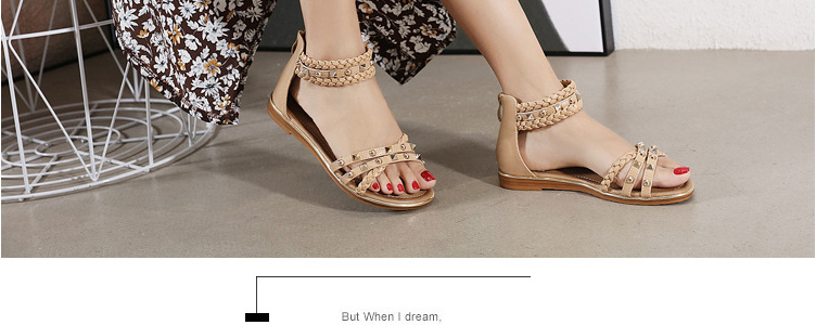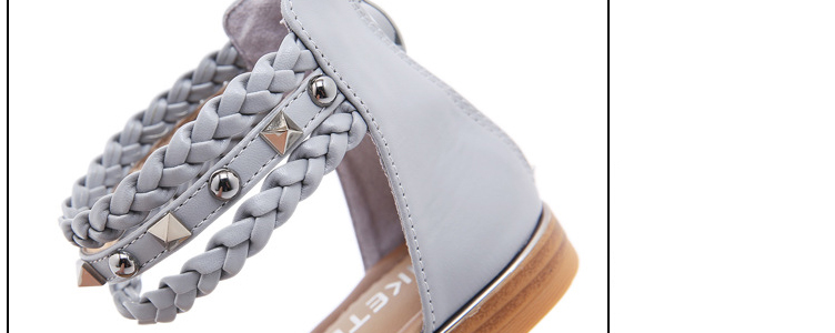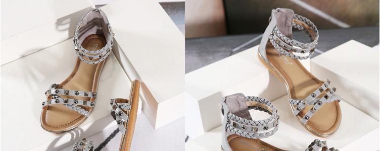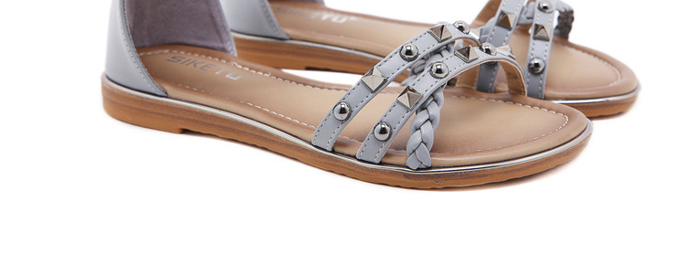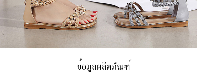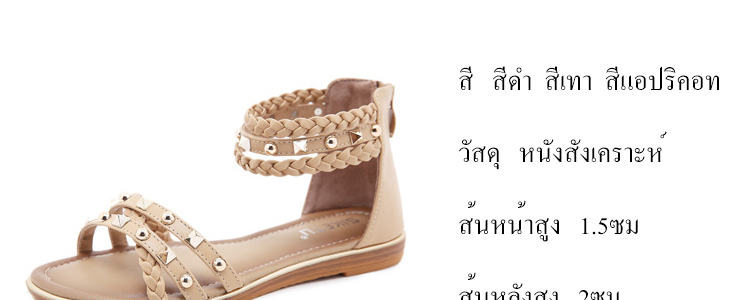 รองเท้ารัดส้นลายถักส้นแบนติดหมุด